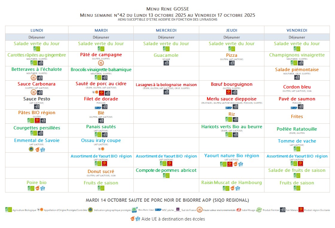 Menu de la semaine